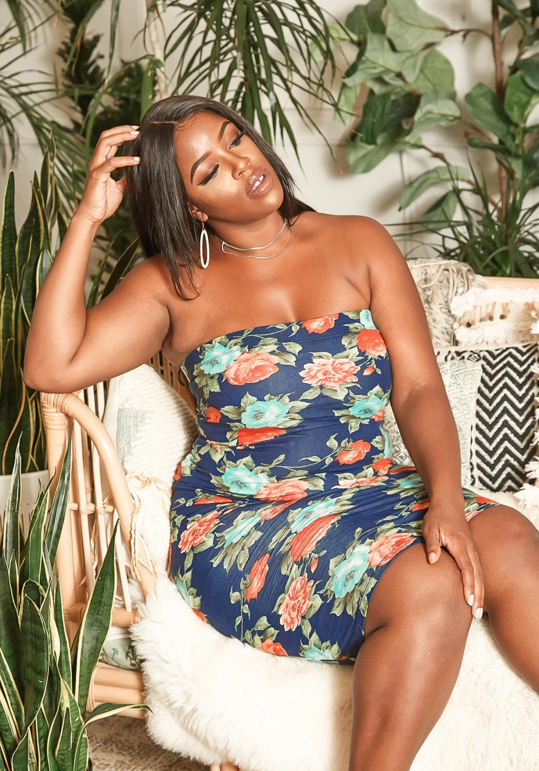 Asoph’s summer loving tube dress for plus size women which features a antique floral print design and bodycon fit.
