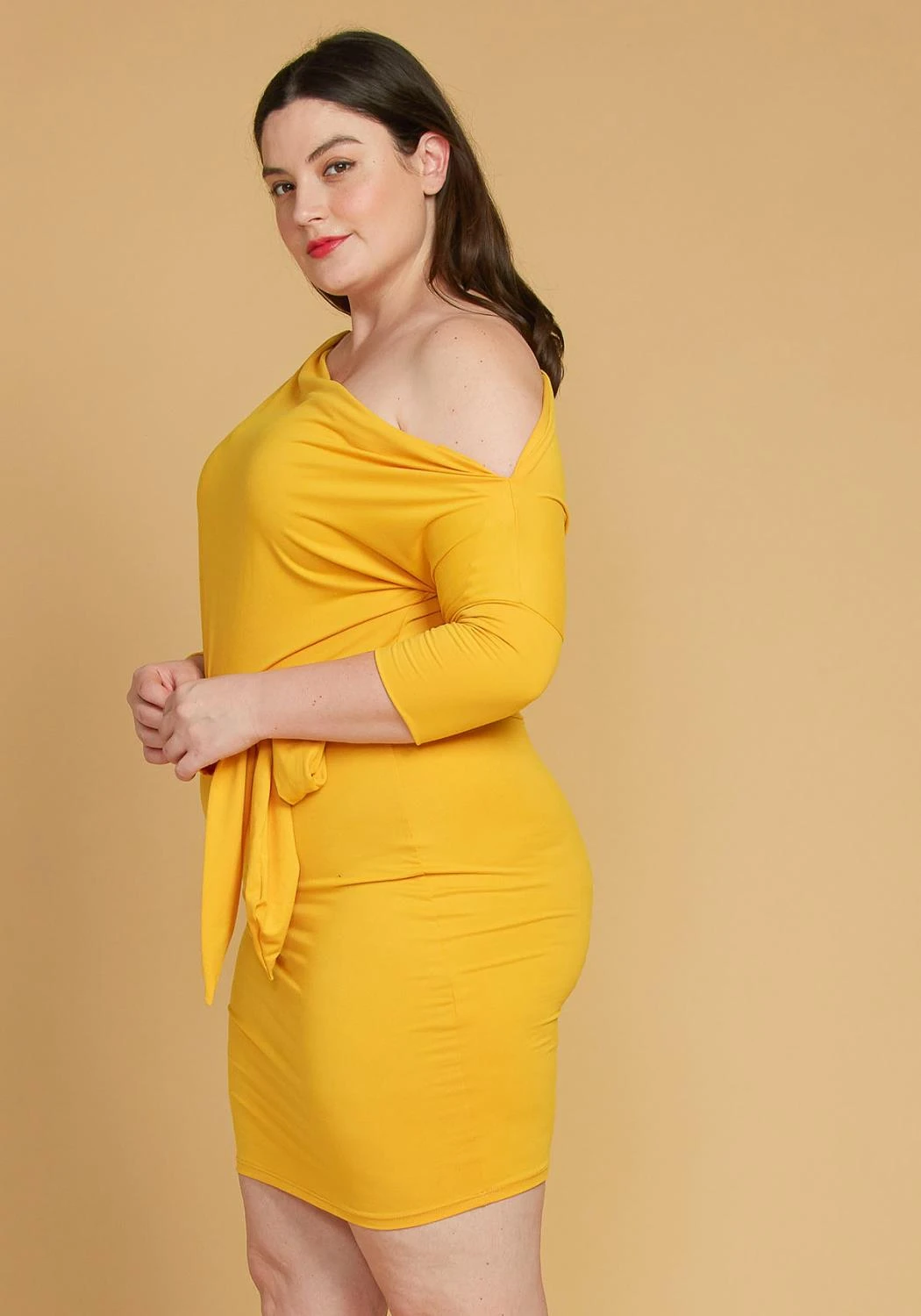 Asoph Plus Size One Shoulder Tie Waist Dress
