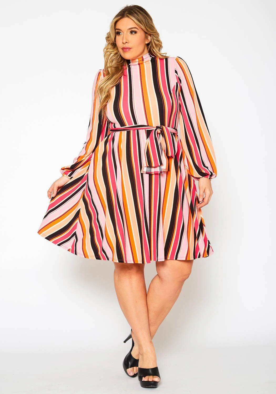 Colorful Mock Neck Fit & Flare Dress