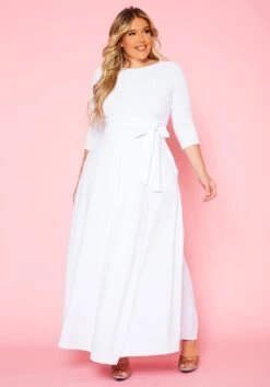 Gorgeous plus size women’s matching set which features a cold shoulder, short sleeve, v-neck, tie front crop top and a high waist double slit hem maxi flare skirt.